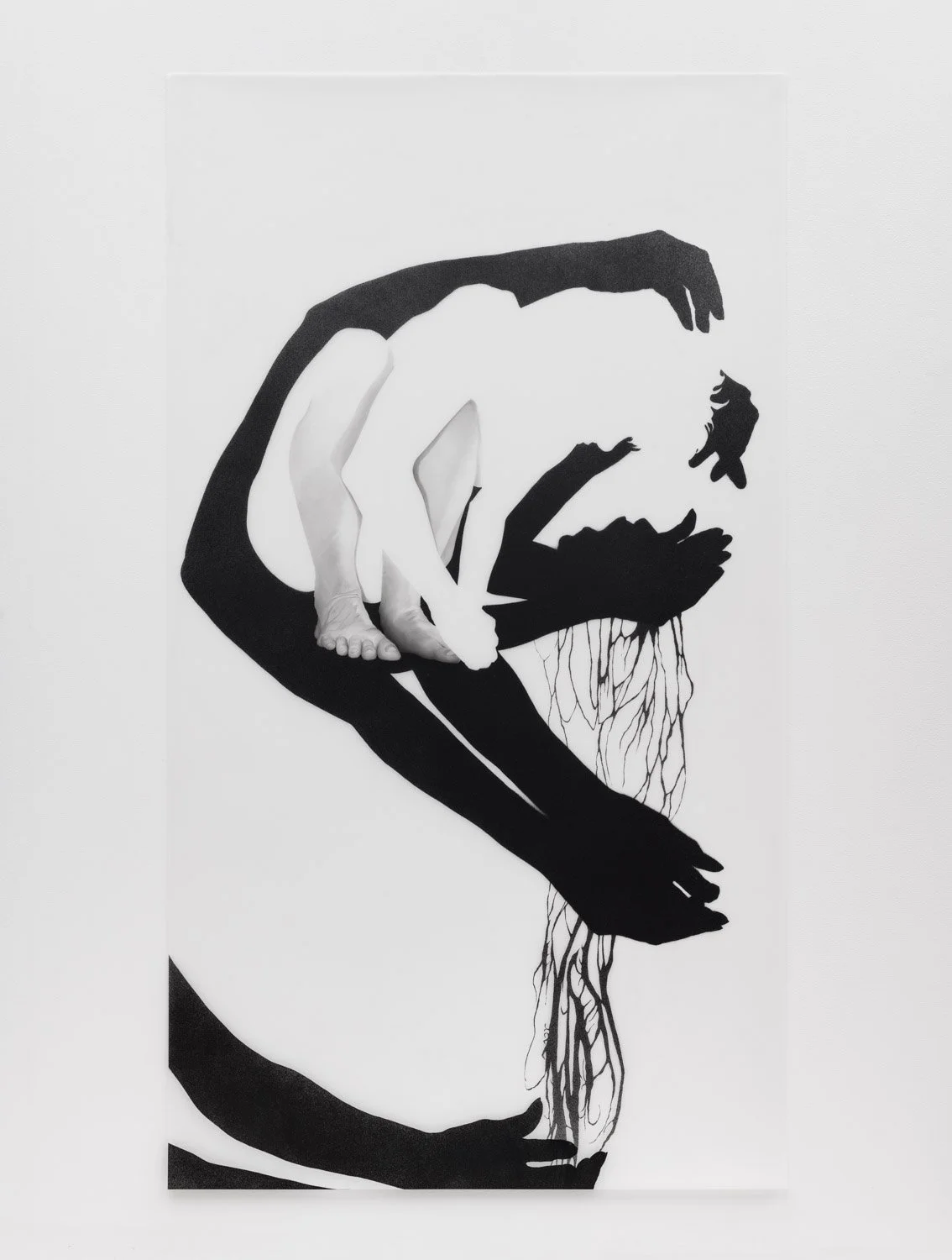 Shed Skin, 2022, conté crayon, charcoal, and ink on Dura-Lar, 72 x 40 inches