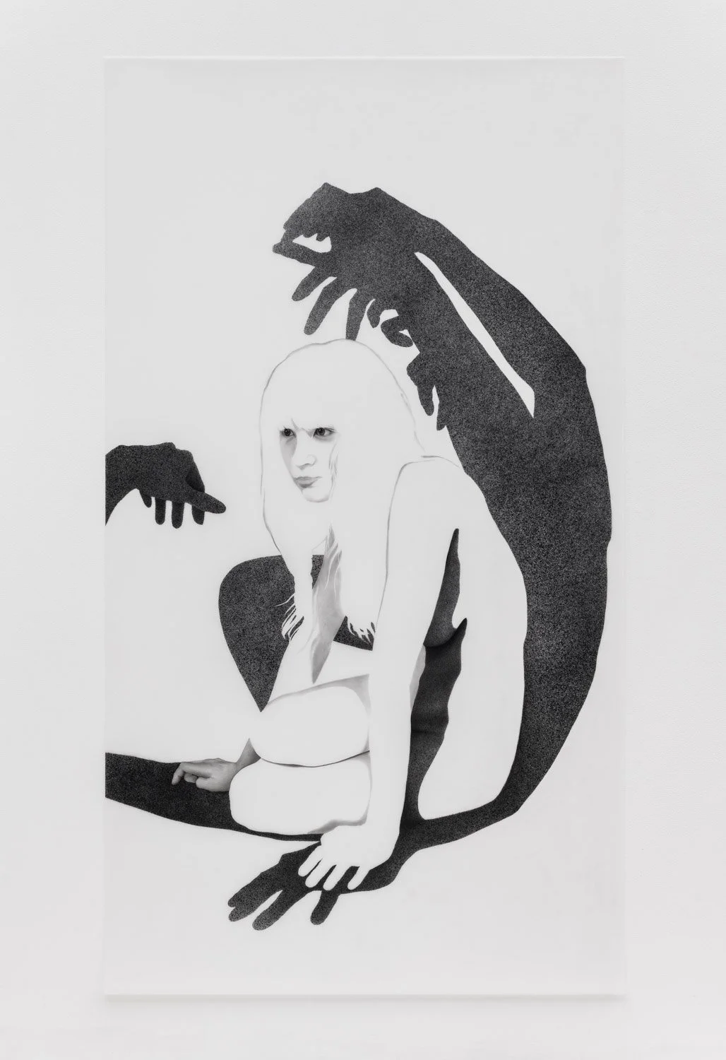 Seat of Power, 2022, conté crayon, charcoal, and ink on Dura-Lar, 72 x 40 inches